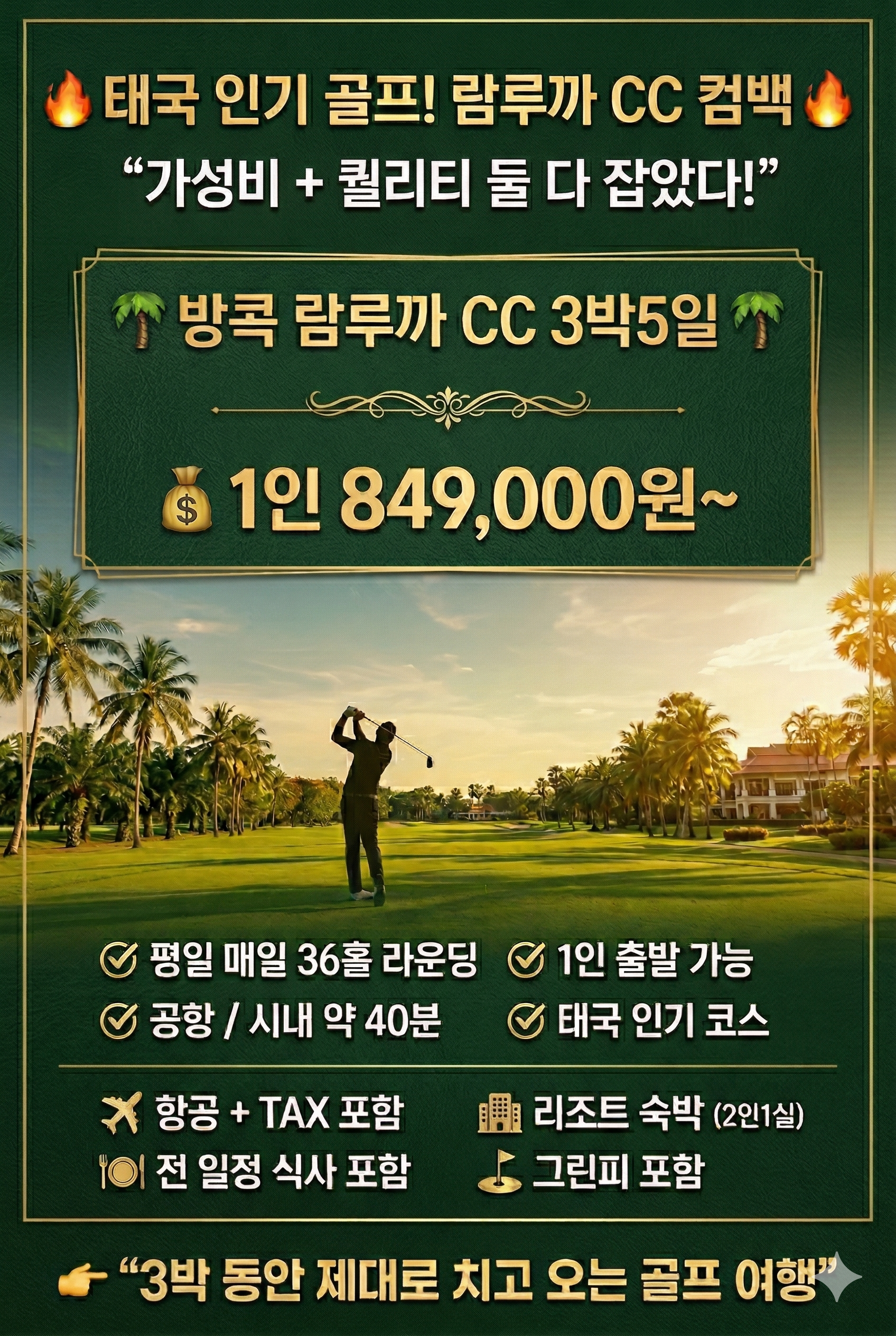 [방콕] 람루카CC 1인출발OK - 매일 36H 라운딩 최고가성비 패키지 3박5일