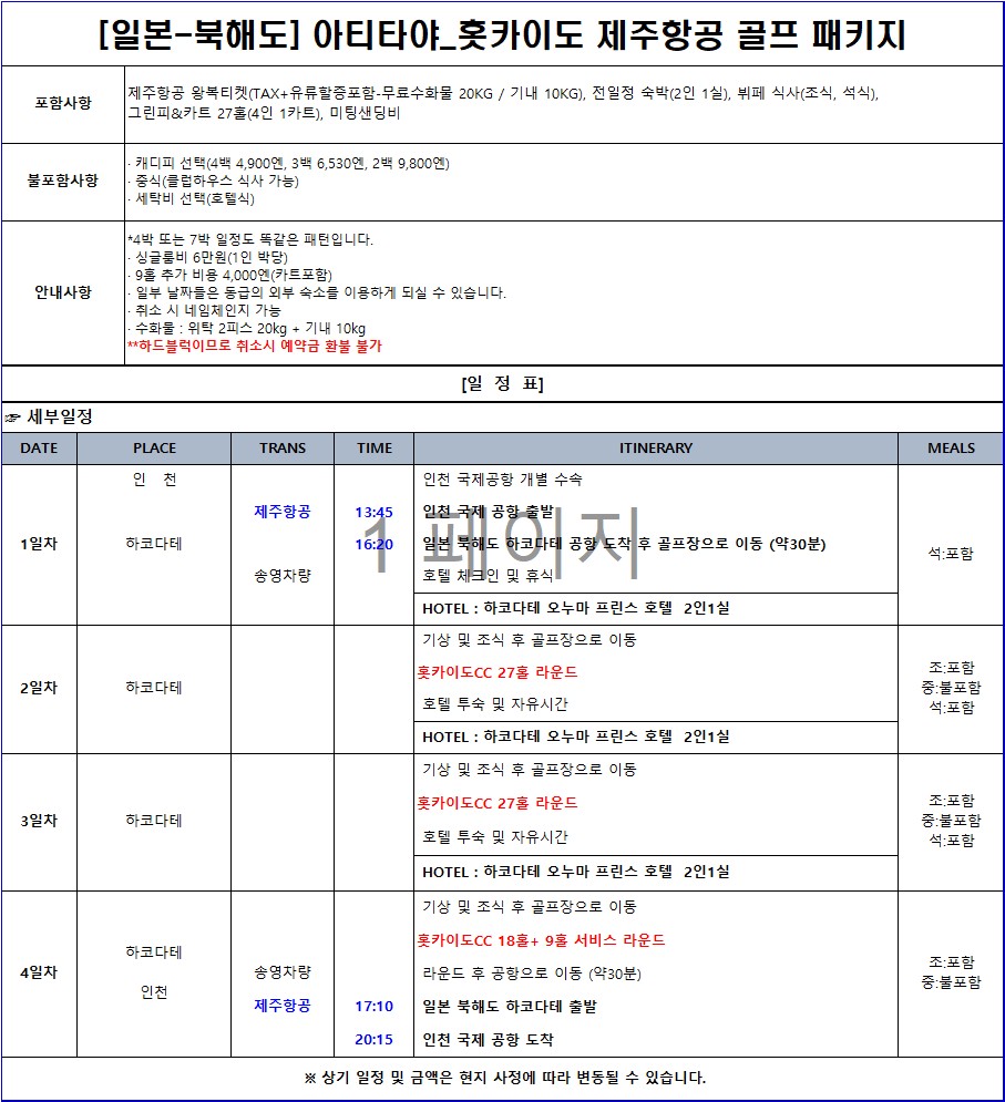 ▶ 오누마코스와 프린스코스로 되어있는 홋카이도 C.C + 오누마 프린스호텔 상품입니다.