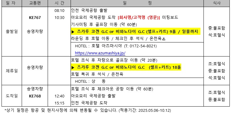 ※특정일 및 공휴일 그린피/호텔비 인상 있습니다.