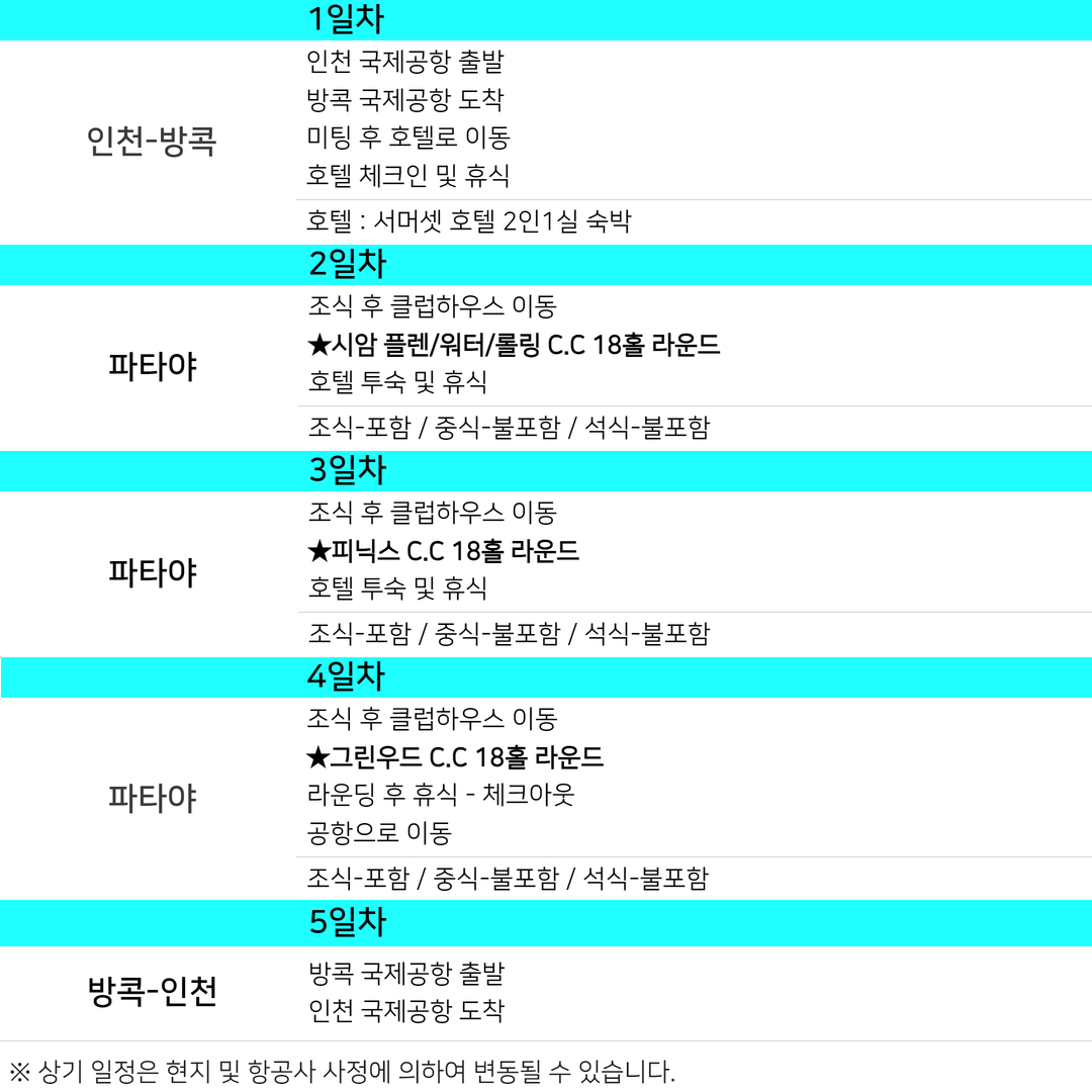 파타야 명품 3색골프 3박5일
