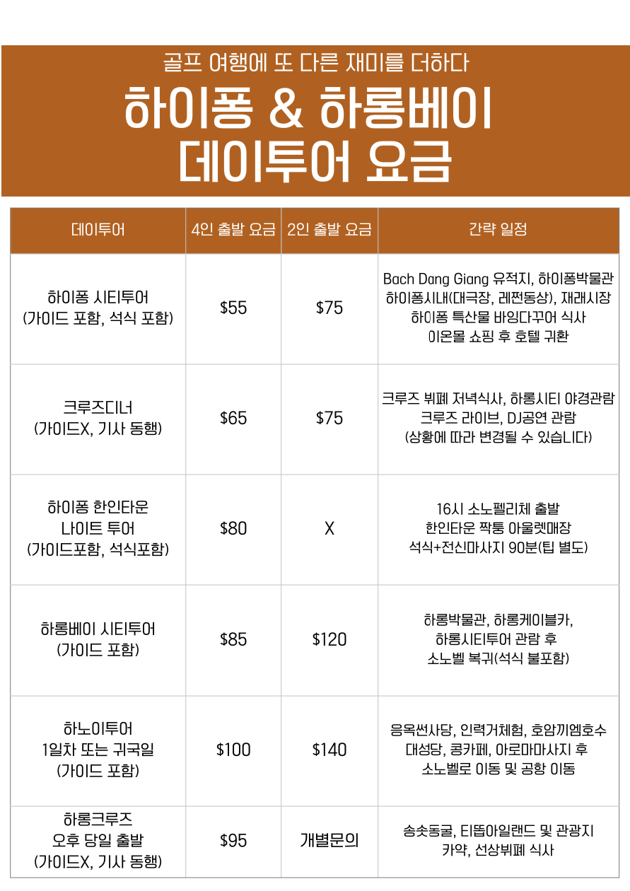 ▶ 하이퐁 & 하롱베이 데이투어 선택 가능(추가 비용 있음)
