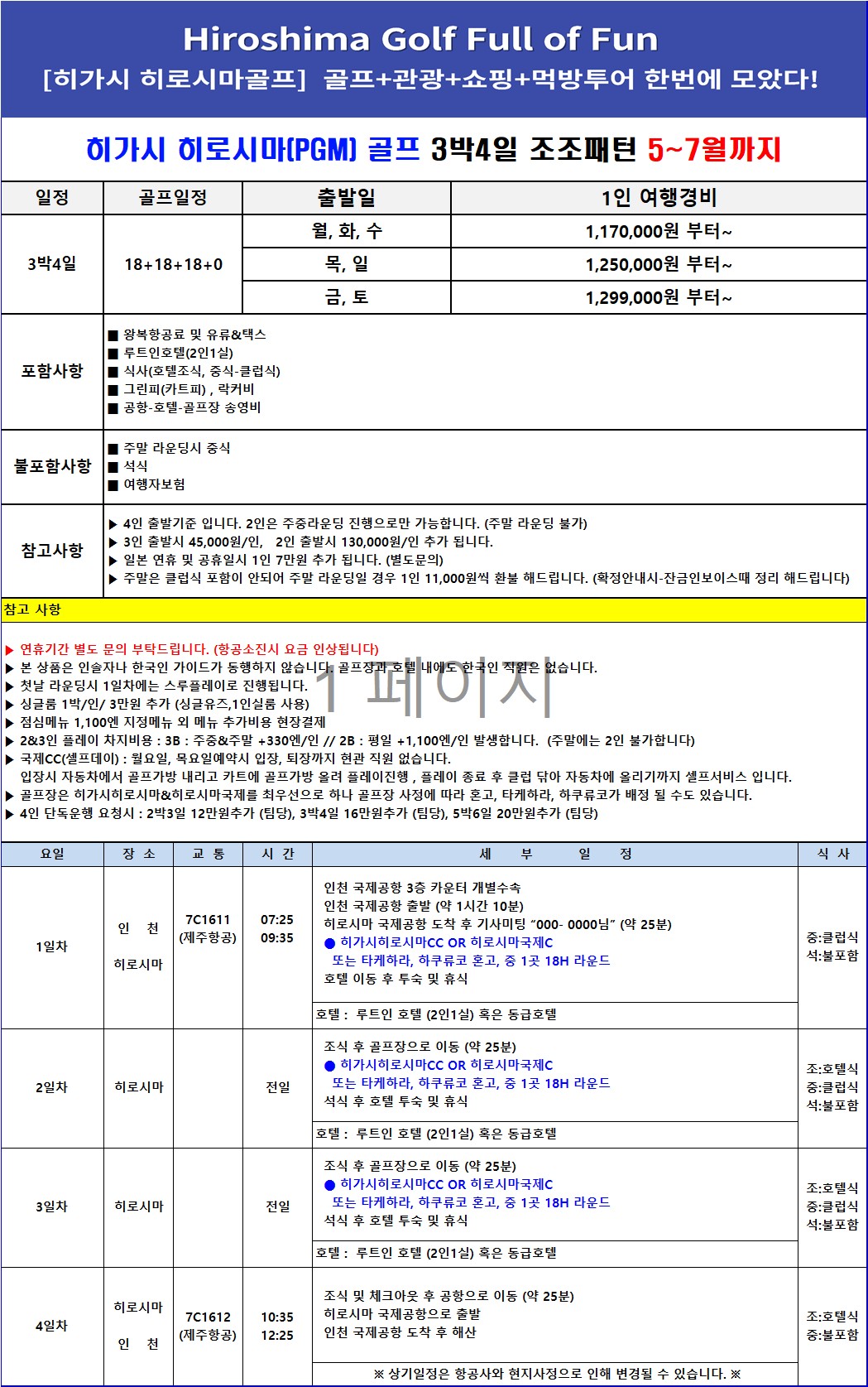 ▶ 월, 화, 수 출발 ---> 1,170,000원 부터~