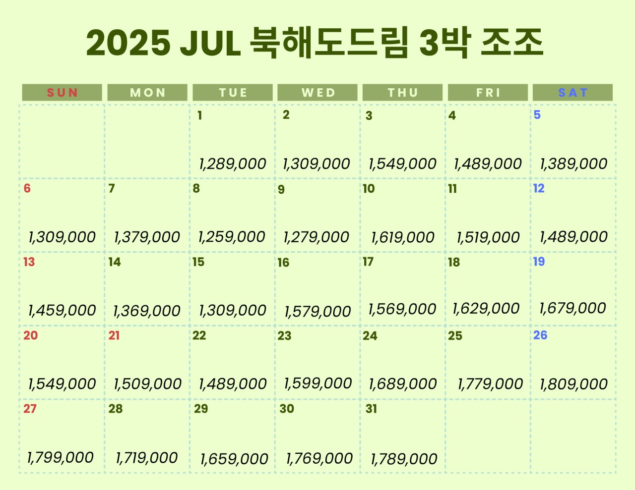 출발일 및 상품가격