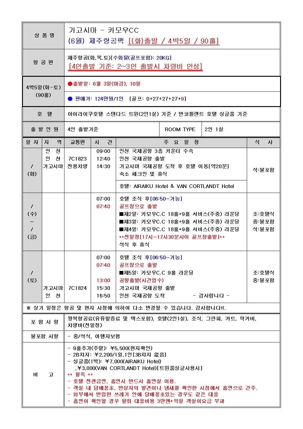 ▶ 제주항공[무료수화물(골프포함) 20kg]