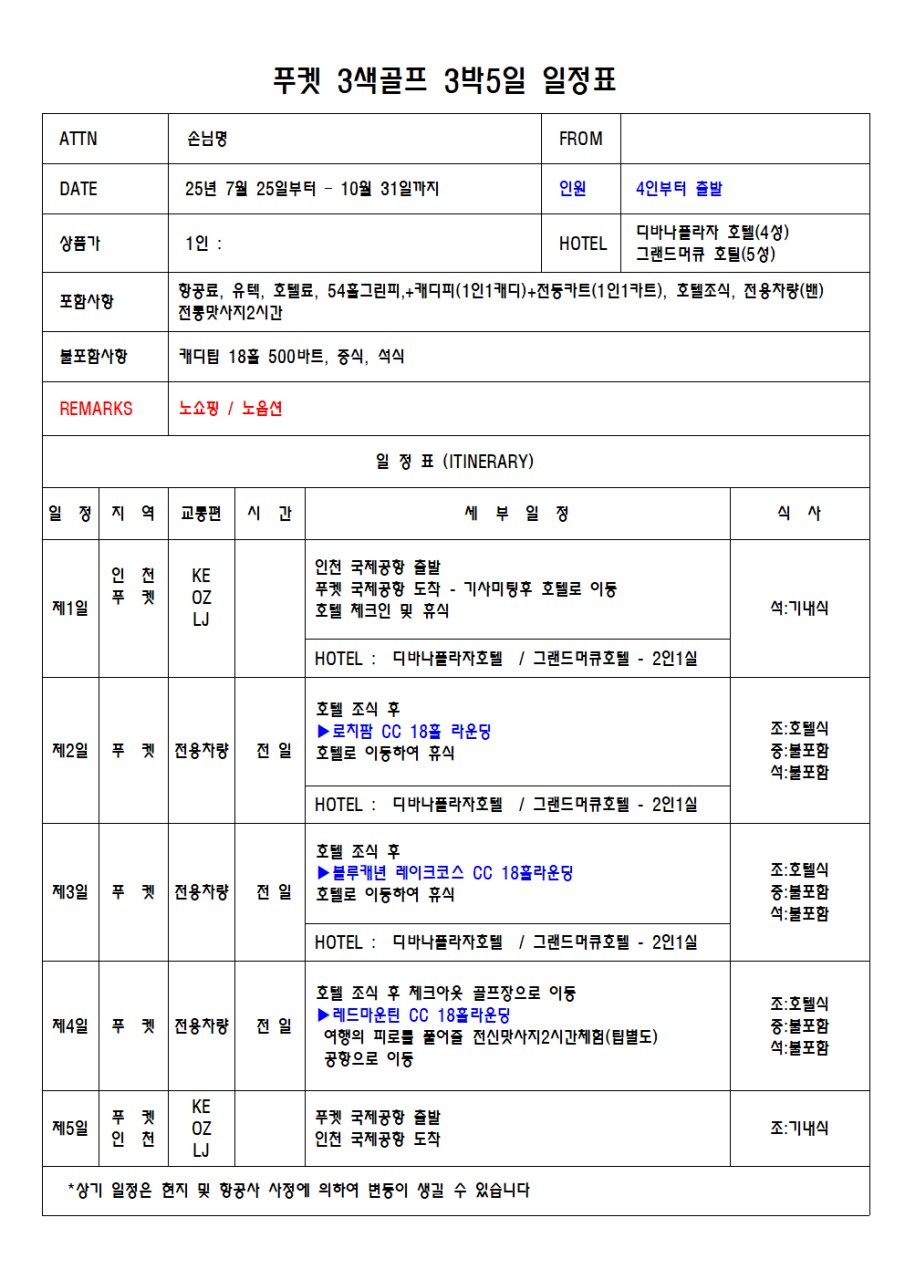 푸켓 파통 시내호텔 숙박 - 3색골프