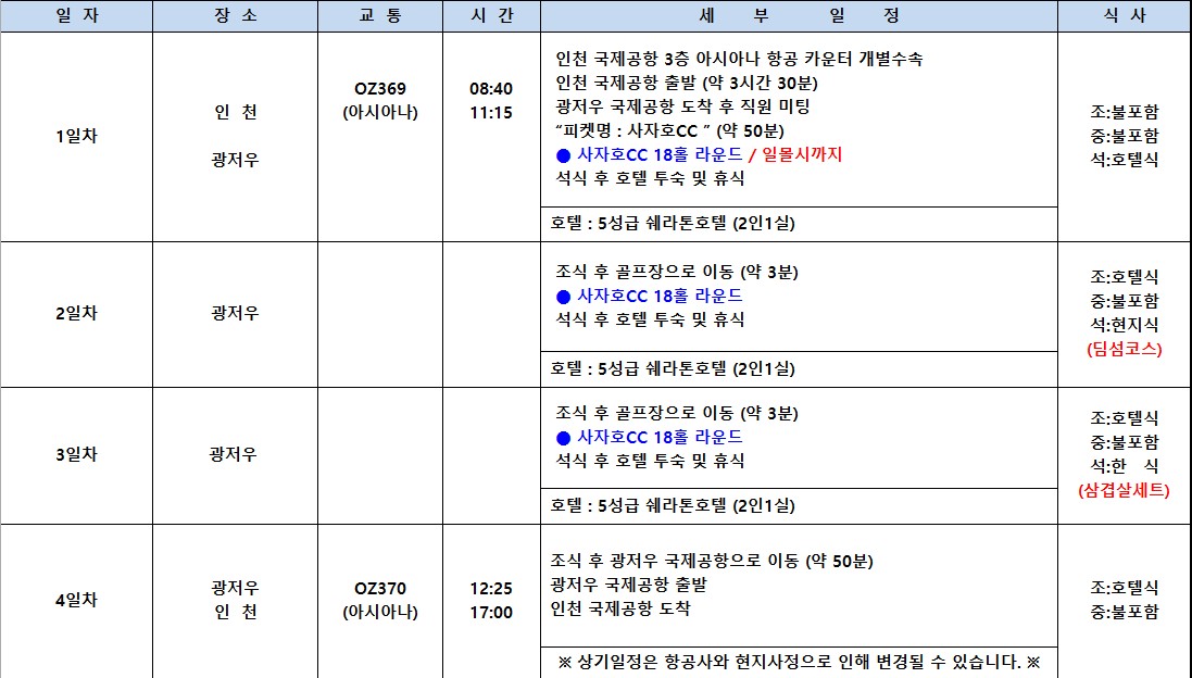 ▶아시아나 조조 패턴 : 현지 도착 후 곧바로 플레이에 들어가는 골프매니아 구성
