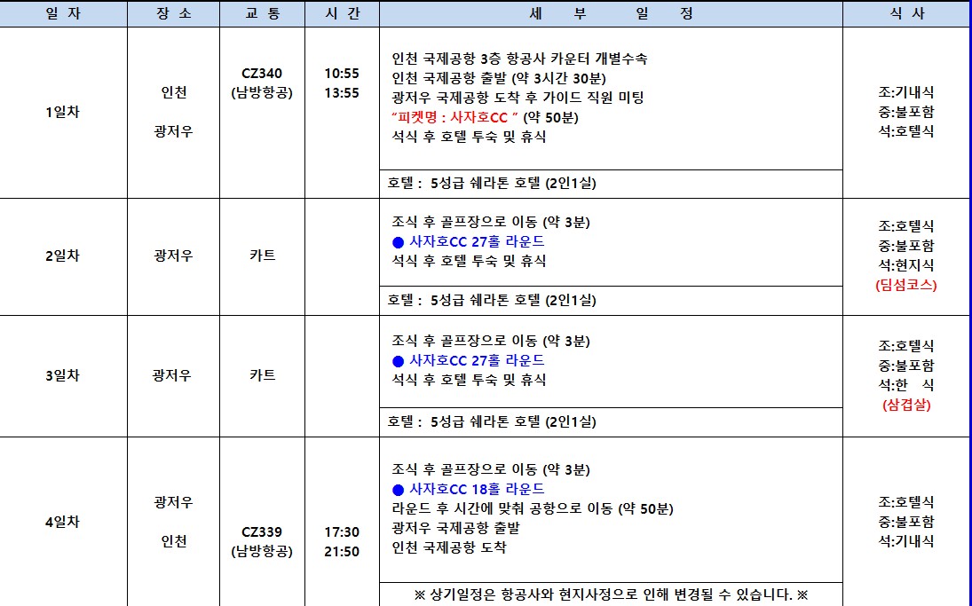 ▶ 인천공항 - 광저우공항 : 약 3시간 30분