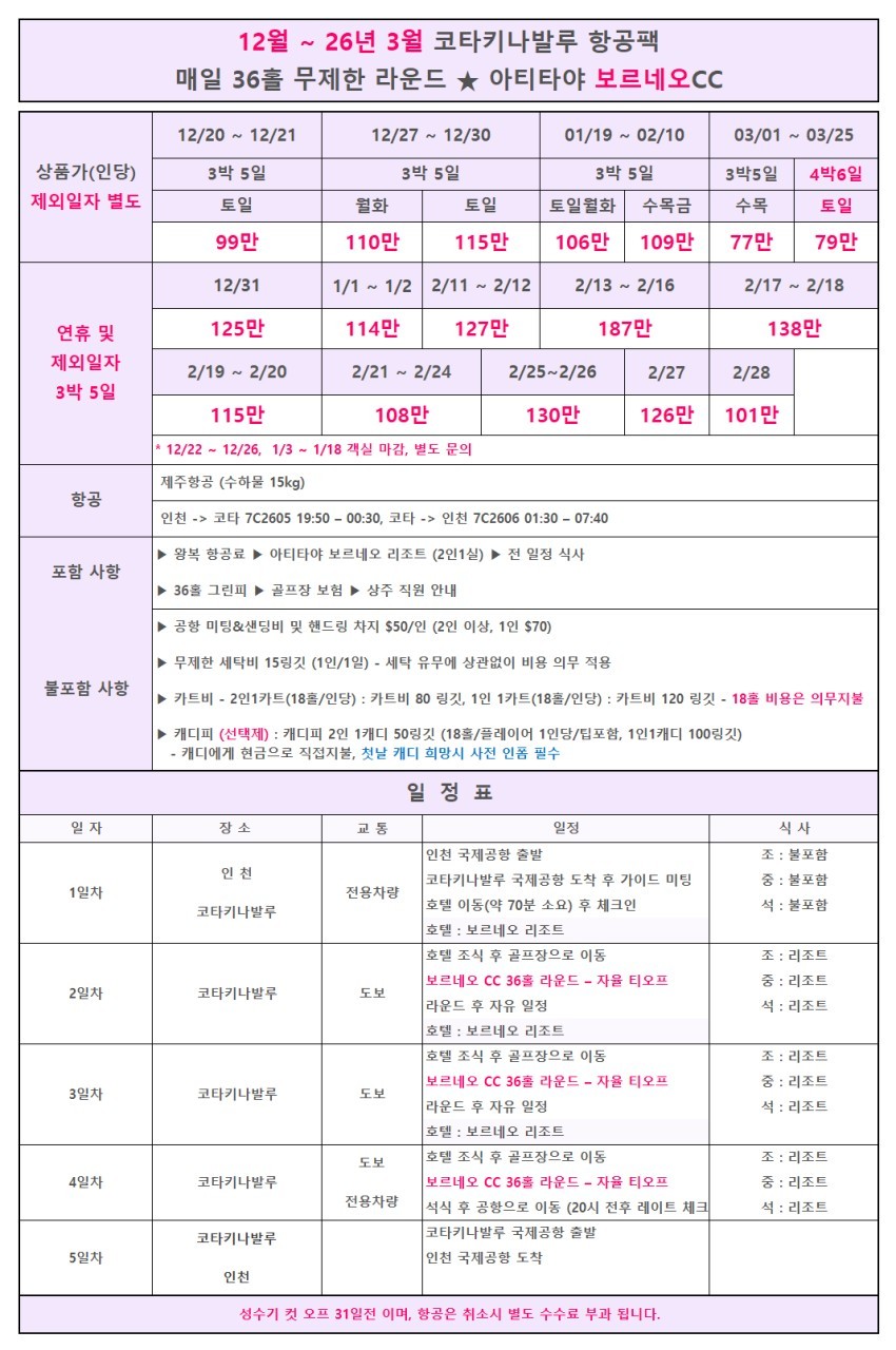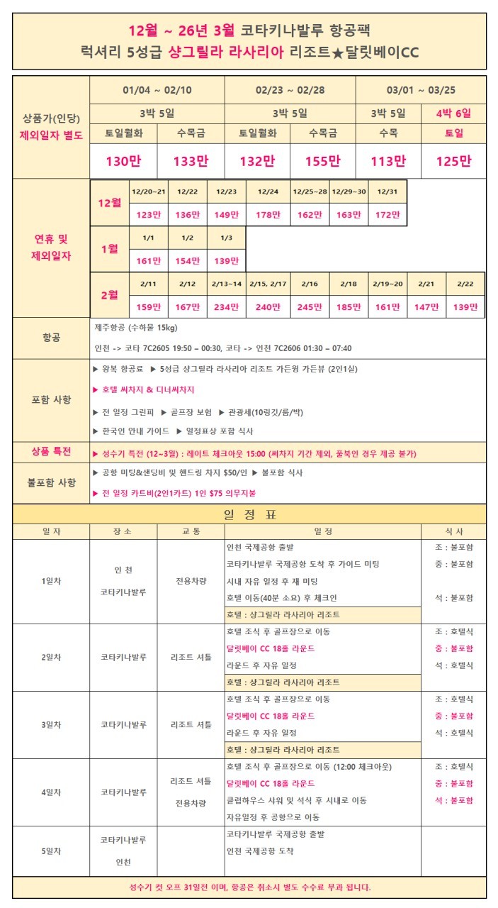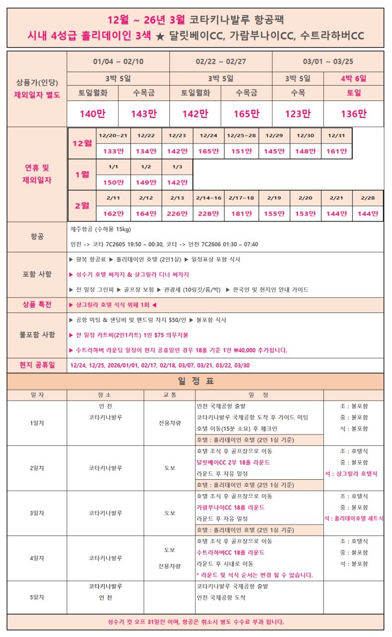 시내 4성급 호텔 + 골프장 3곳라운딩 또는