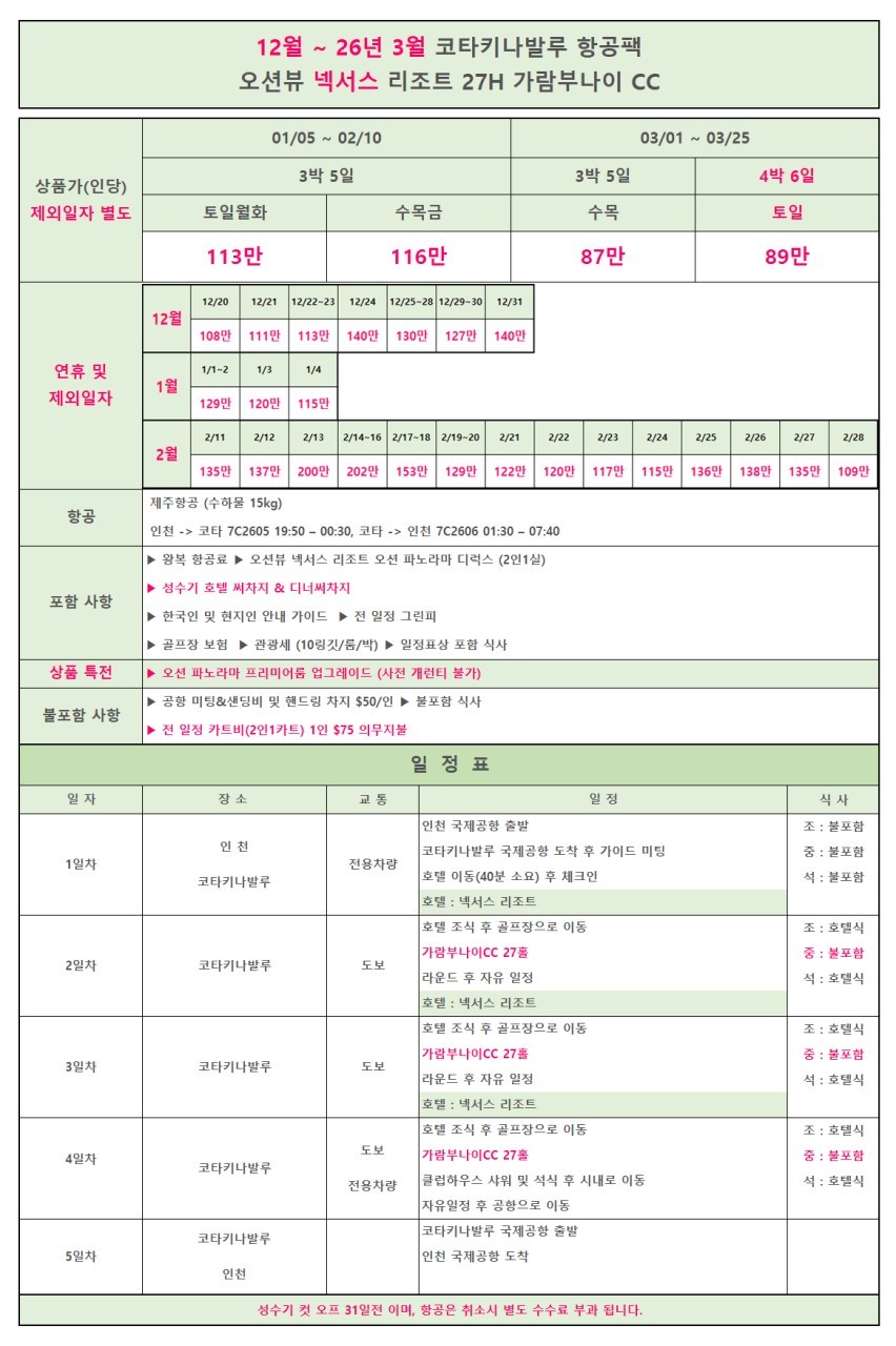 3번) 오션뷰 넥서스 리조트 + 가람부나이