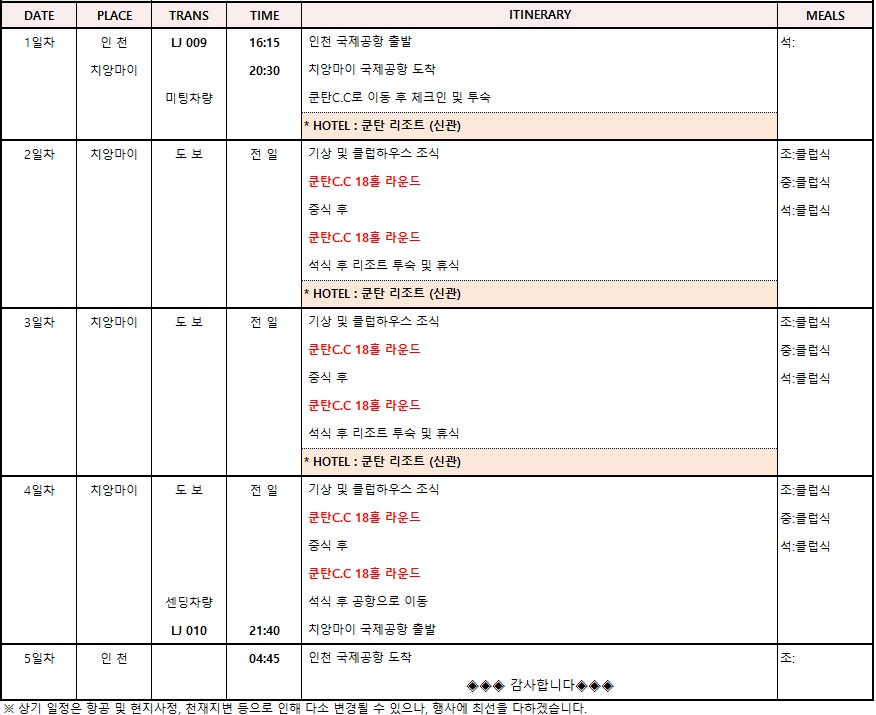 치앙마이-인천 [LJ010] 21:40 - 04:45