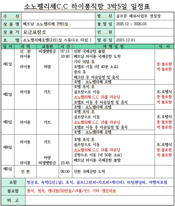 - 식사 및 캐디팁 외 모두포함 초특가 가성비상품