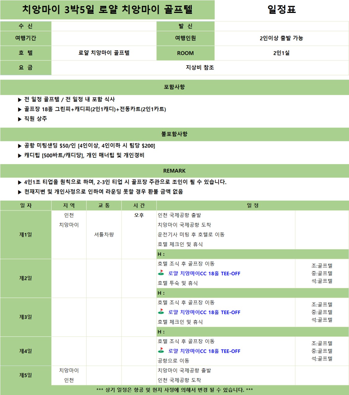 - 천재지변 및 개인사정으로 라운딩을 불가시 환불불가