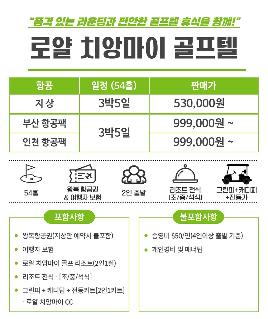 [부산 ] 3박5일 로얄 치앙마이 골프텔 999,000원부터 ~