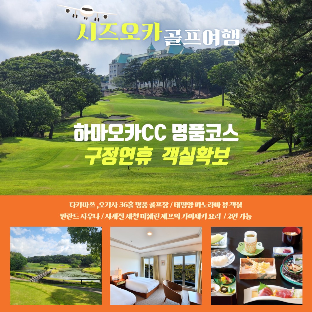 | 🚩 기타안내 | - 싱글룸 4,400엔 / 트윈룸 싱글유즈 시 8,800엔 - 중식은 클럽식으로 기본 1,500엔 / 차액현지지불 - 석식 일본 오마카세 요리 신청시 8,000엔 추가 - 석식은 택시로 5~10분 이동하여 이자카야 등을 이용(호텔에서 예약가능) - 캐디를 원하실경우 사전 예약 및 수배 (12,000엔/4인1팀/18H) - 2인시 송영비 1인 2,500엔 카트비 1인 1,650엔 추가 - 3인시 송영비 1인 2,500엔 카트비 1인 550엔 추가 - 9홀 추가시 평일 5,500엔 주말 8,250엔