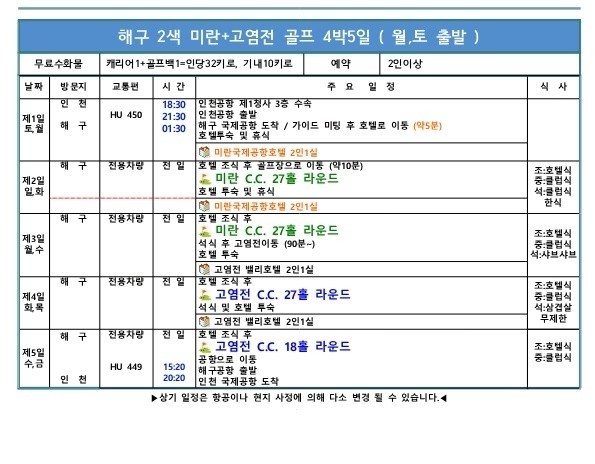 전 일정 그린피