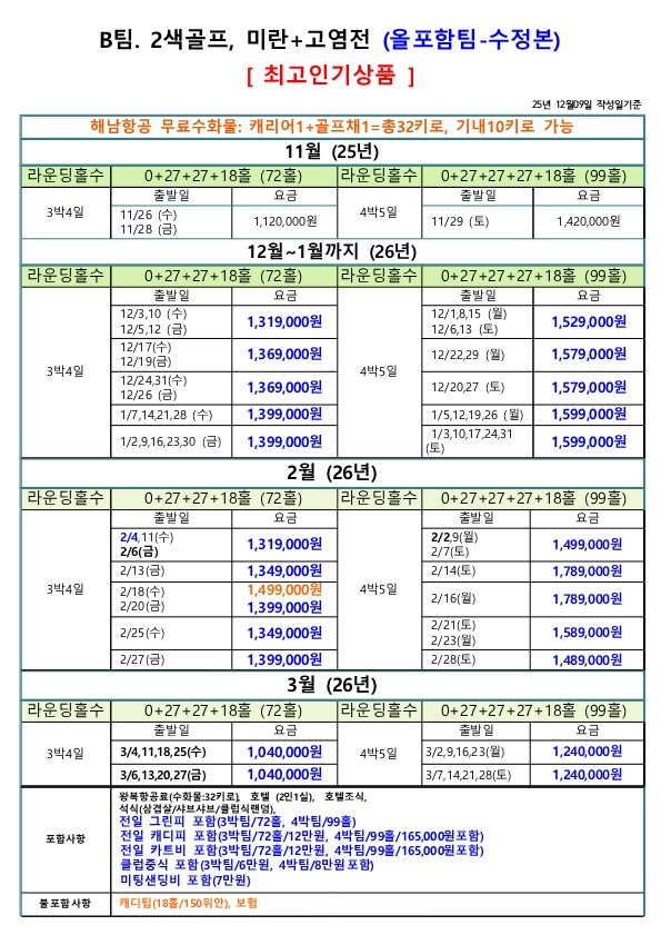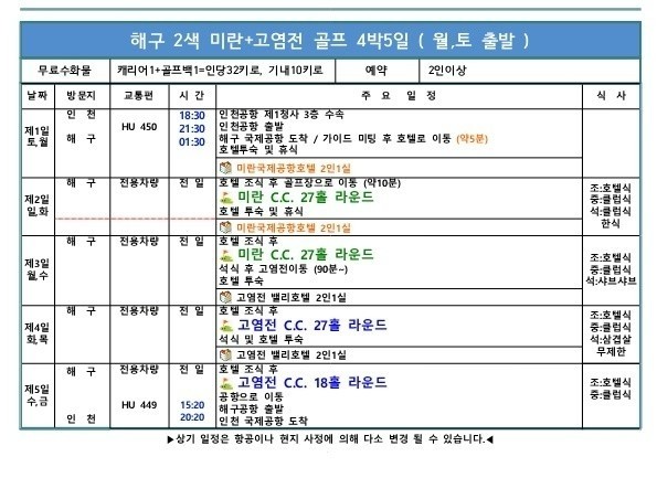 ▶전일정 72홀캐디피 포함
