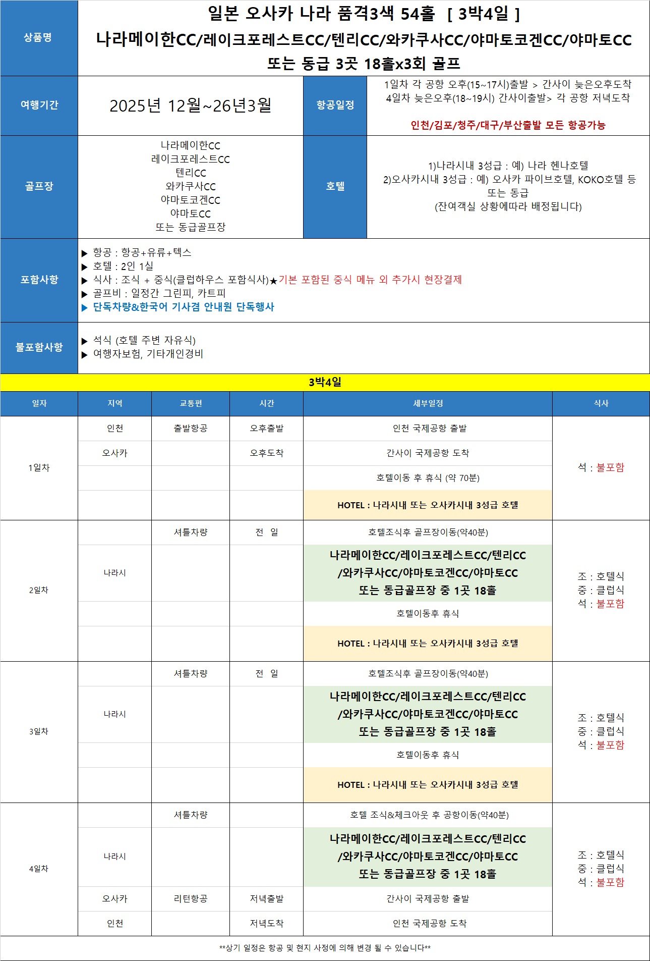 항공사 및 시간은 예약후 확정 됩니다.