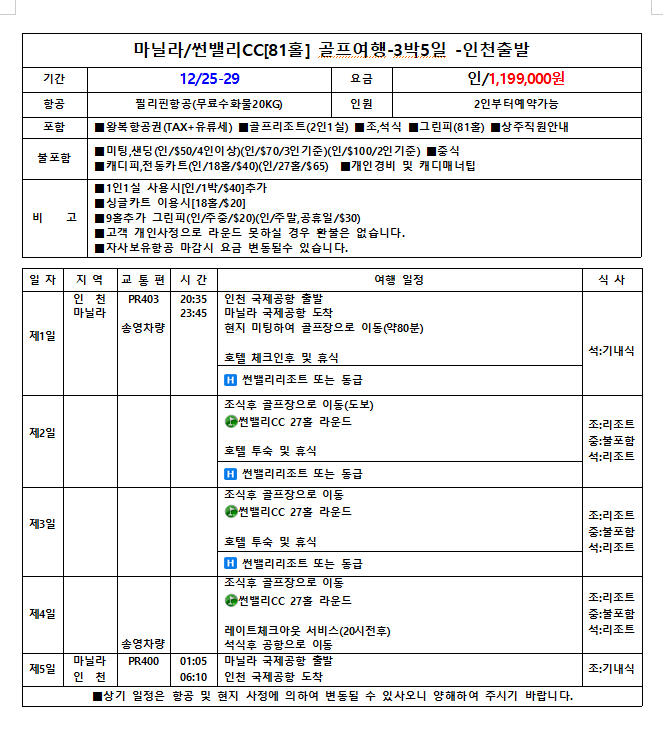 12월 25일 인천 출발[3박5일]81홀