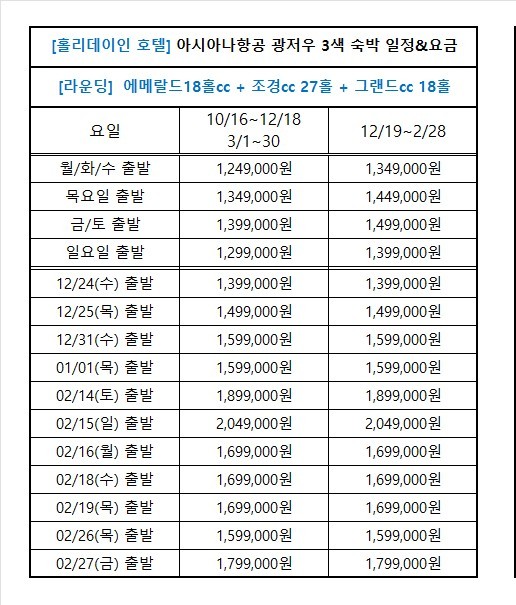 - 관광옵션 별도문의 (위 일정표에 기재)