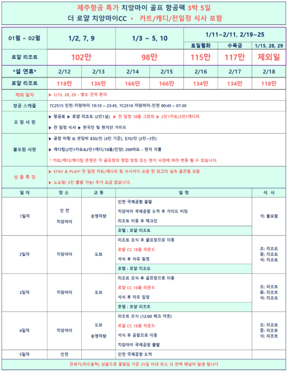 🎅메리-치앙마이, 골프 항공팩!