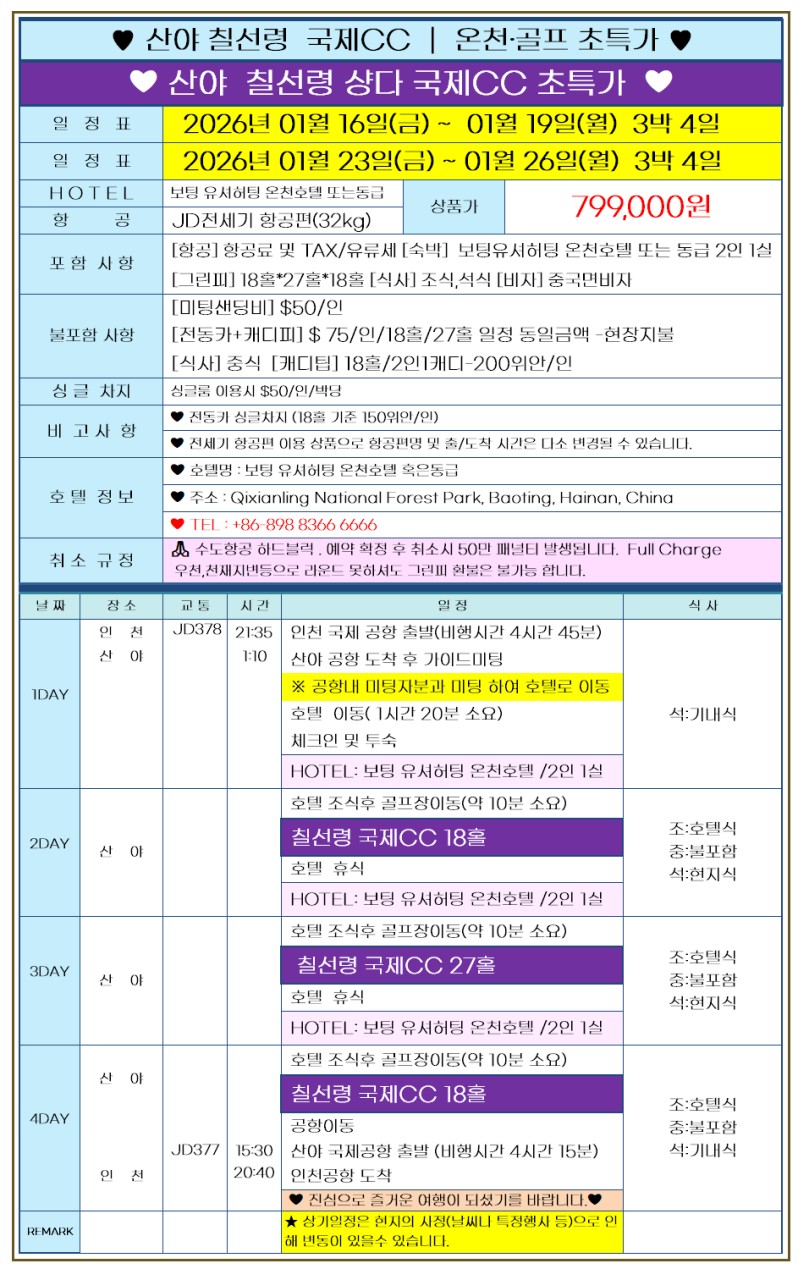 산야 칠선령 국제CC 조인골프 특가데이