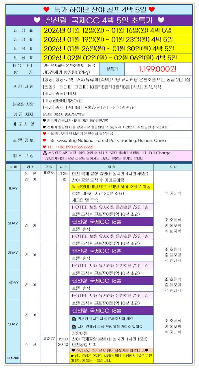 📍1월 (월) 출발 4박5일 ▶ 1,199,000원