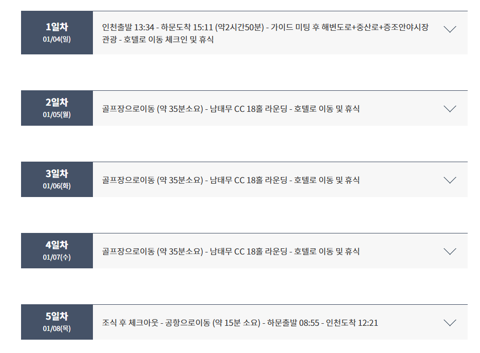 01/6, 11, 25, 2/1, 2, 3 - 4박5일 ▶ 1,350,000원