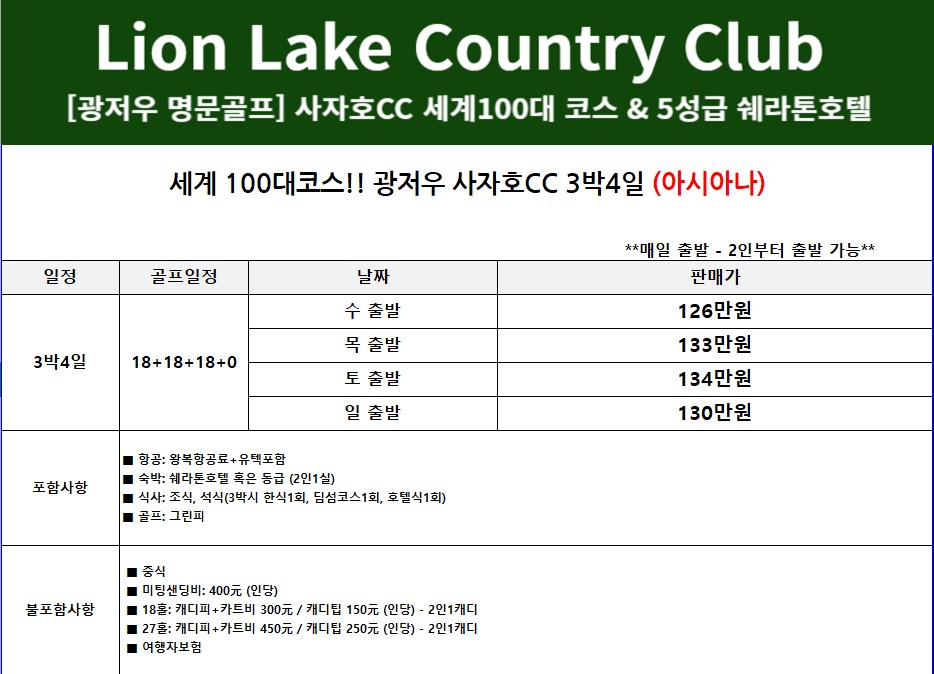 [수] 출발 ➨ 126만원