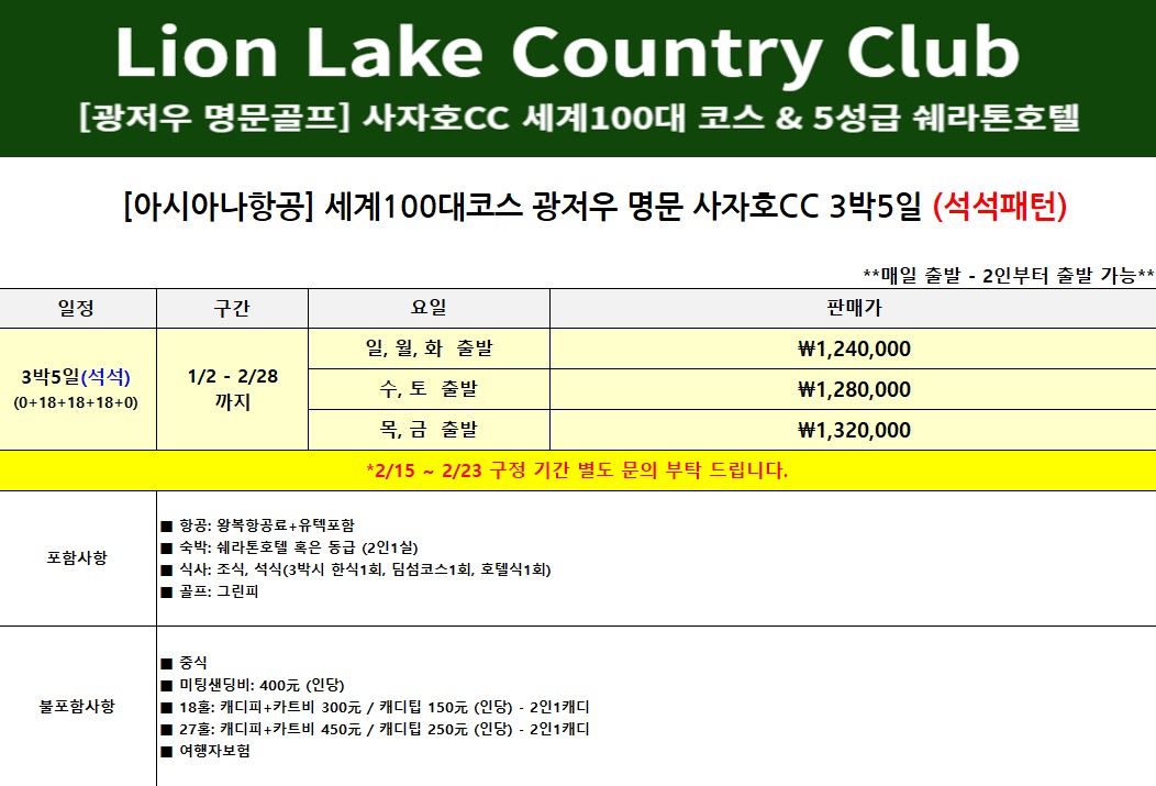 2/27 (금) 출발 ➨ 145만