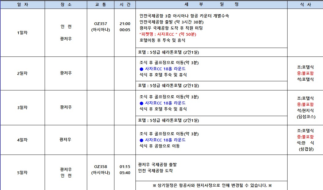아시아나 석석 3박5일 / 0+18+18+18+0