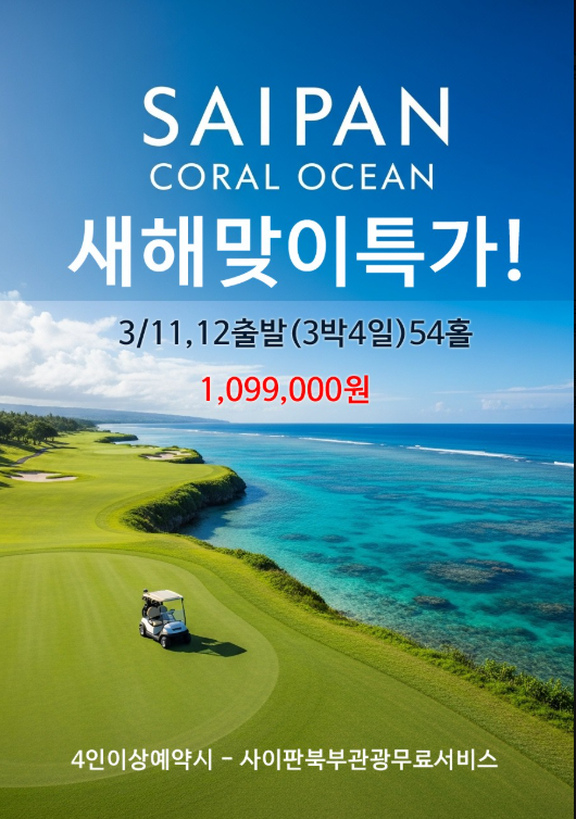 | 4시간만에 만날수있는 환상의섬"사이판" 2022그랜드오픈 "코랄오션골프&리조트" 가슴벅찬 광활한 풍경"사이판 관광 자유여행까지" 잠시 시간이 멈춘듯한 그곳... 눈 앞에 펼쳐지는 아름다운 바다를 품에 안고 느끼는 진정한 힐링골프..그리고 자유관광까지 이보다 더 좋을수 없다.! 휴식과 골프 그리고 관광까지 모두가 한번에 가능한 다시 찾는 여행1위 사이판으로 여러분을 초대합니다~ ![]() | ||||||||