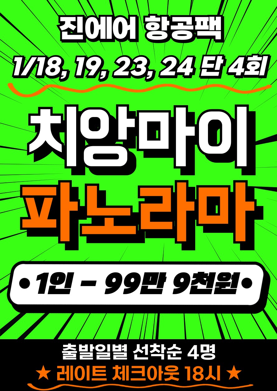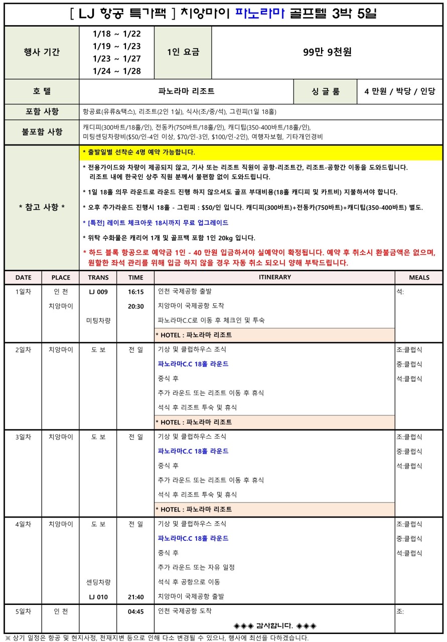 [치앙마이] 가싼 파노라마 골프텔 - 진에어 3박5일 특가 이벤트