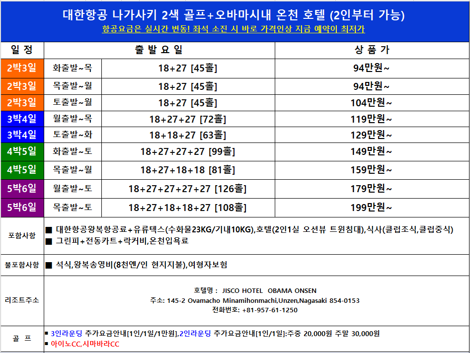 ▶시마바라cc 1959년에 개장한 골프장으로, 운젠후겐타케 중턱에 위치해 있습니다. 이곳은 규슈 지역에서 가장 오래된 골프장으로, 아름드리 나무들이 양쪽에 늘어서 있어 오랜 역사와 전통을 느낄 수 있습니다. 총 18홀로 구성된 시마바라CC는 남향으로 설계되어 있어 가을에도 따뜻하게 골프를 즐길 수 있는 곳입니다. 특히 모든 그린에서 바다를 볼수 있는 오션뷰를 자랑하는 골프장 입니다. 경치가 정말 좋은 골프장. 페어웨이 카트 진입 가능한 골프장 입니다.