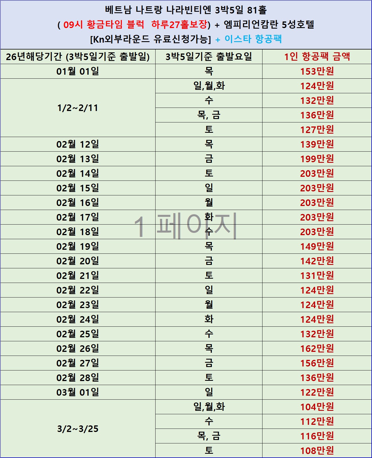 | 🧳 출발일&금액 | 26년1~3월25일 까지 매일 출발