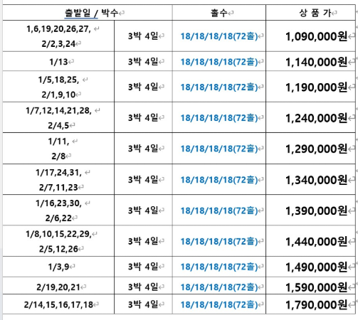 - 단체항공권일 경우 출발 1~3일전 발권합니다.