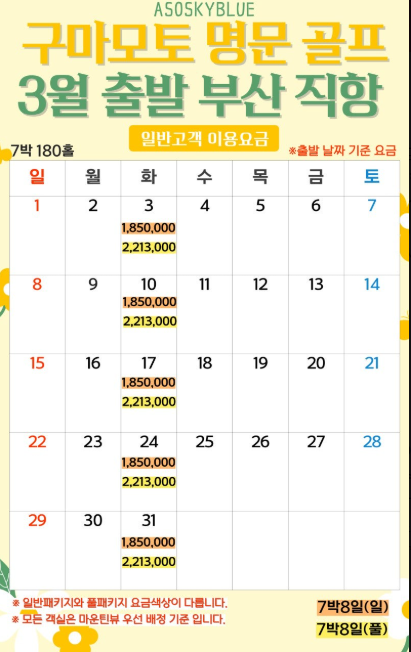 -✈ 이스타항공(부산-구마모토) ** 3박4일: (토)출발 ** 4박5일: (화) 출발 ** 7박8일: (화) 출발