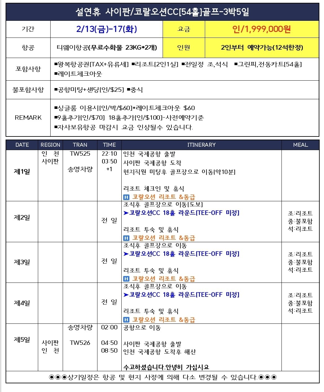 [사이판] 설연휴 54홀 2인부터 예약 선착순마감임박