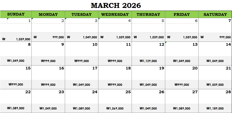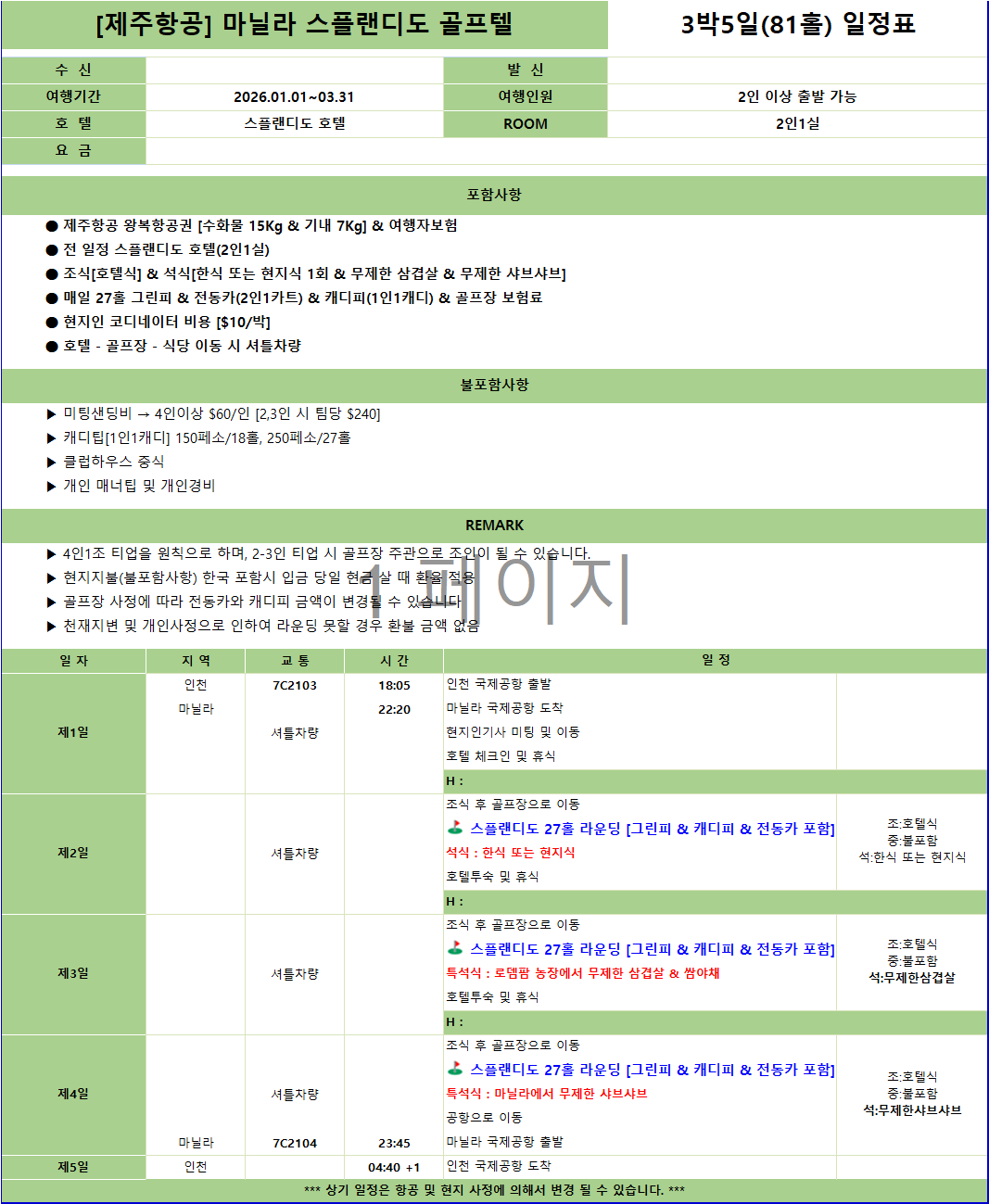 ▶ 현지지불(불포함사항) 한국 포함시 입금 당일 현금 살 때 환율 적용