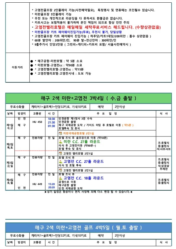하이커우(미란국제공항호텔) HAIKOU MEILAN INTERNATIONAL AIRPORT HOTEL. 하이커우 미란인터네셜국제호텔 (海口美兰国际机场酒店) 전화번호 : +86 898-3679 6888 호텔 영문주소 : -NO.5 HANG'AN 1ST STREET, MEILAN DISTRICT, HAIKOU CITY, HAINAN PROVINCE 설명 : 하이커우 공항과5분거리에 위치한 미란인터내셔널에어포트호텔은 새벽 도착 후 짧은 이동으로 곧바로 휴식을 취할수 있다는게 가장 큰 장점입니다. 2018년에 오픈한 신축 호텔이라 세련된 인테리어와 디자인으로 아늑한 느낌이 들어 편안한 휴식이 가능하고 샤워부스와 욕조가 분리되어 있어 사용이 편리합니다. 호텔 부대시설로 스타벅스.편의점.헬스장,세탁실이 있으며, 호텔2층에는 면세점과 연결된 통로가 있어서 라운딩 후에는 면세점, 쇼핑몰 등 구경꺼리 다양합니다.