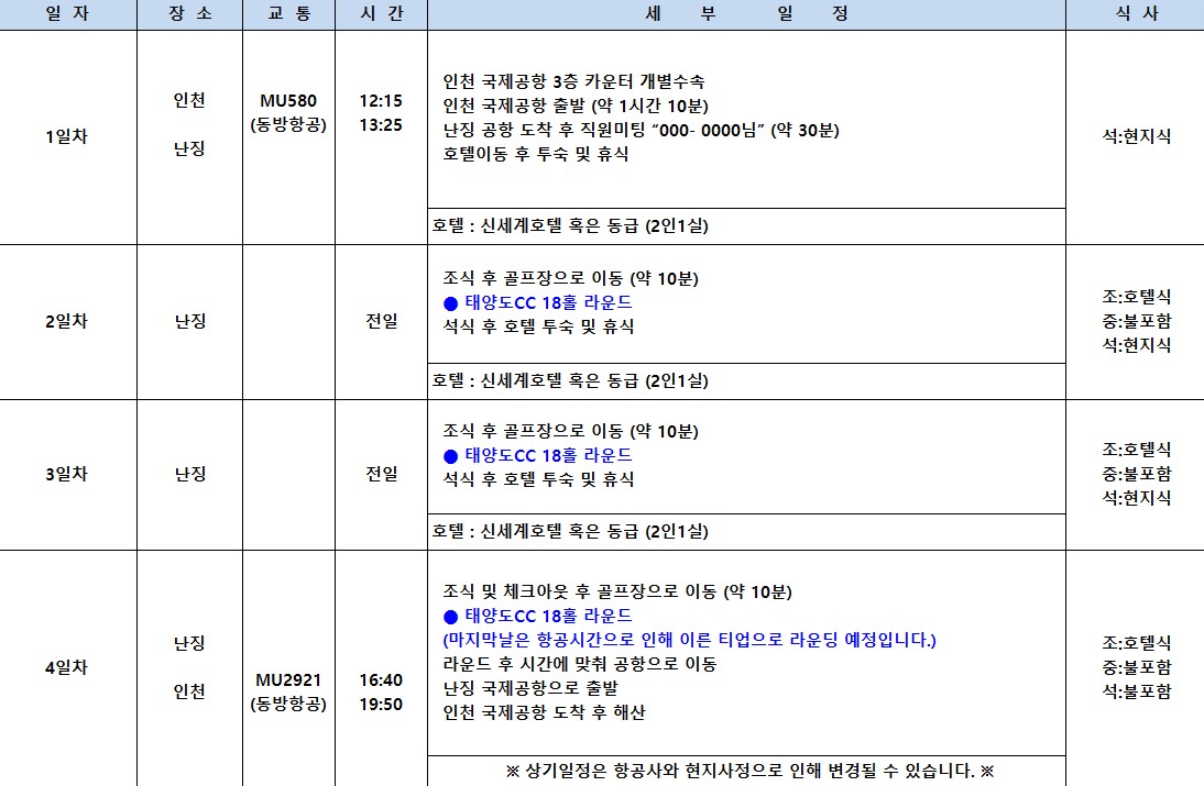 남경 3박4일 일정표 ![]() 아시아나 ![]()