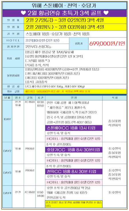 입금계좌 IM뱅크(구)대구은행 504-10-647221-9 예금주: 보물섬투어(조태석)