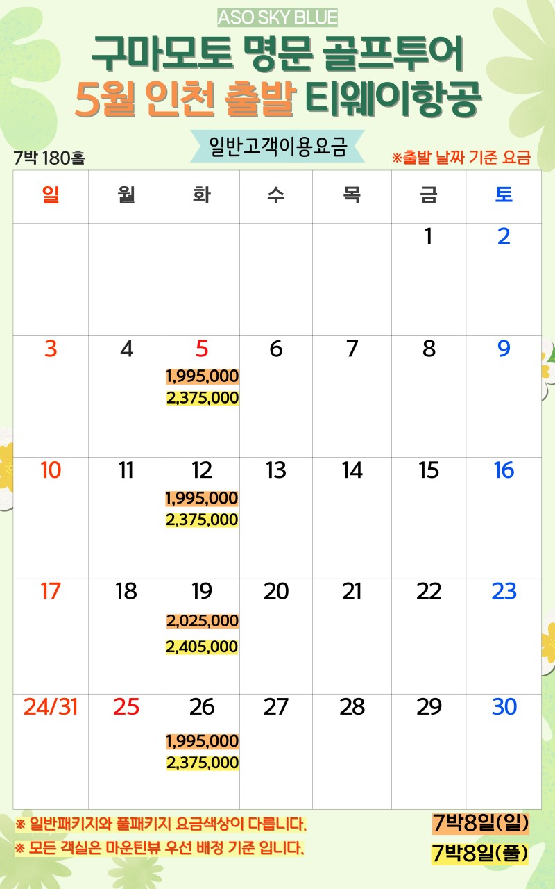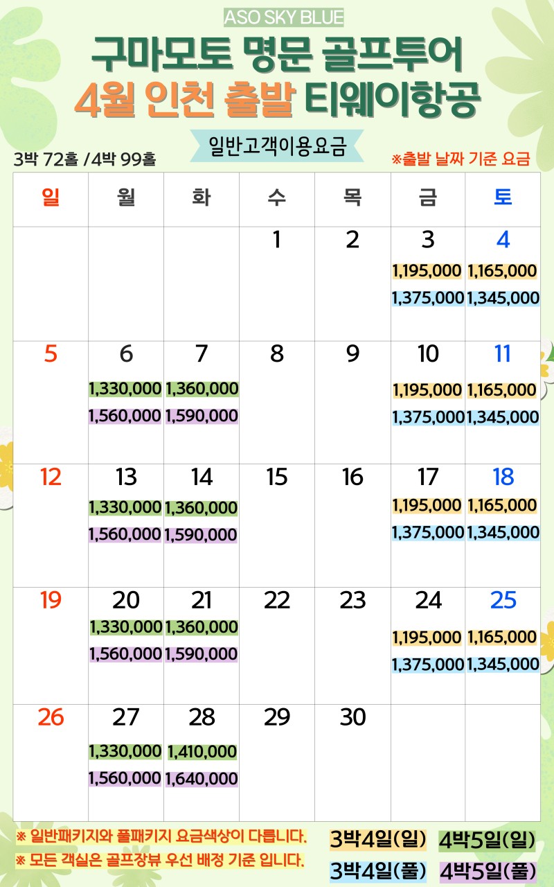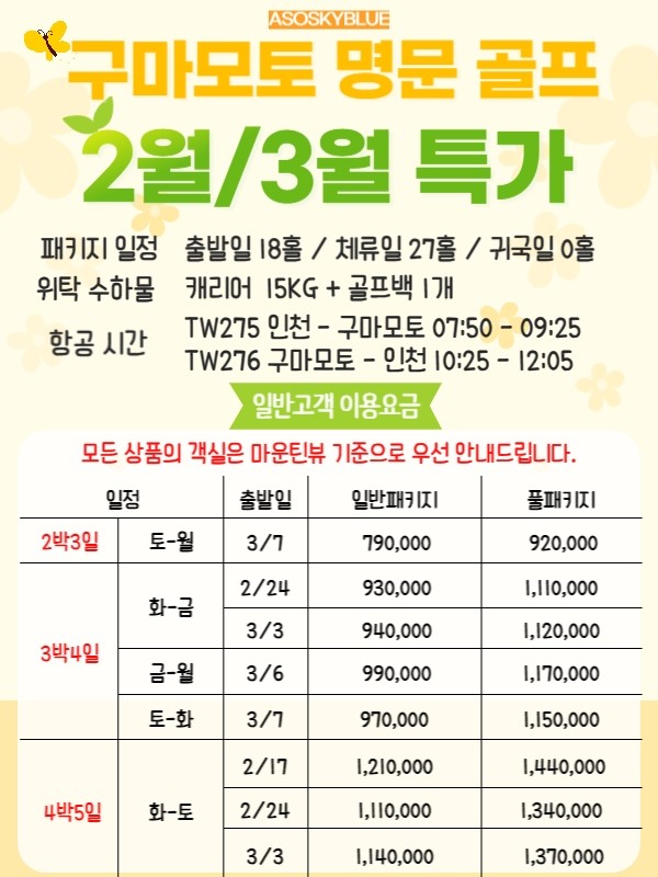 [구마모토] 아소 스카이블루 골프 리조트 (1/16 기준 판매가 업데이트)