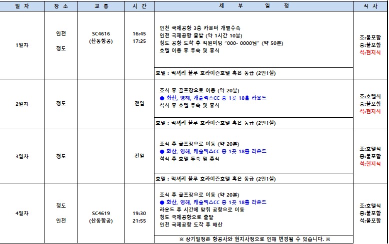 입금계좌 IM뱅크(구)대구은행 504-10-647221-9 예금주: 보물섬투어(조태석)