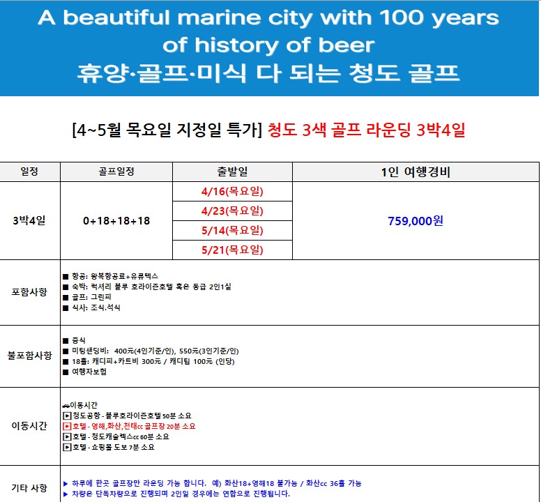 5성급 블루호라이즌 호텔에서 누리는 완벽한 힐링 ![]() 청도공항 - 블루호라이즌호텔 50분 소요