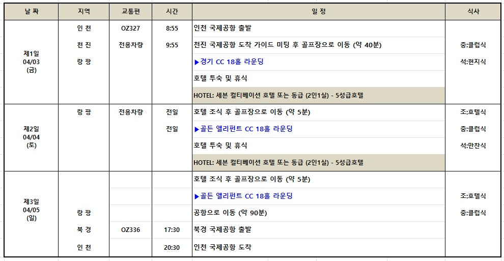 - 봄기운 가득한 천진에서 진행되는 월례회 라운딩 & 신페리오 경기 포함