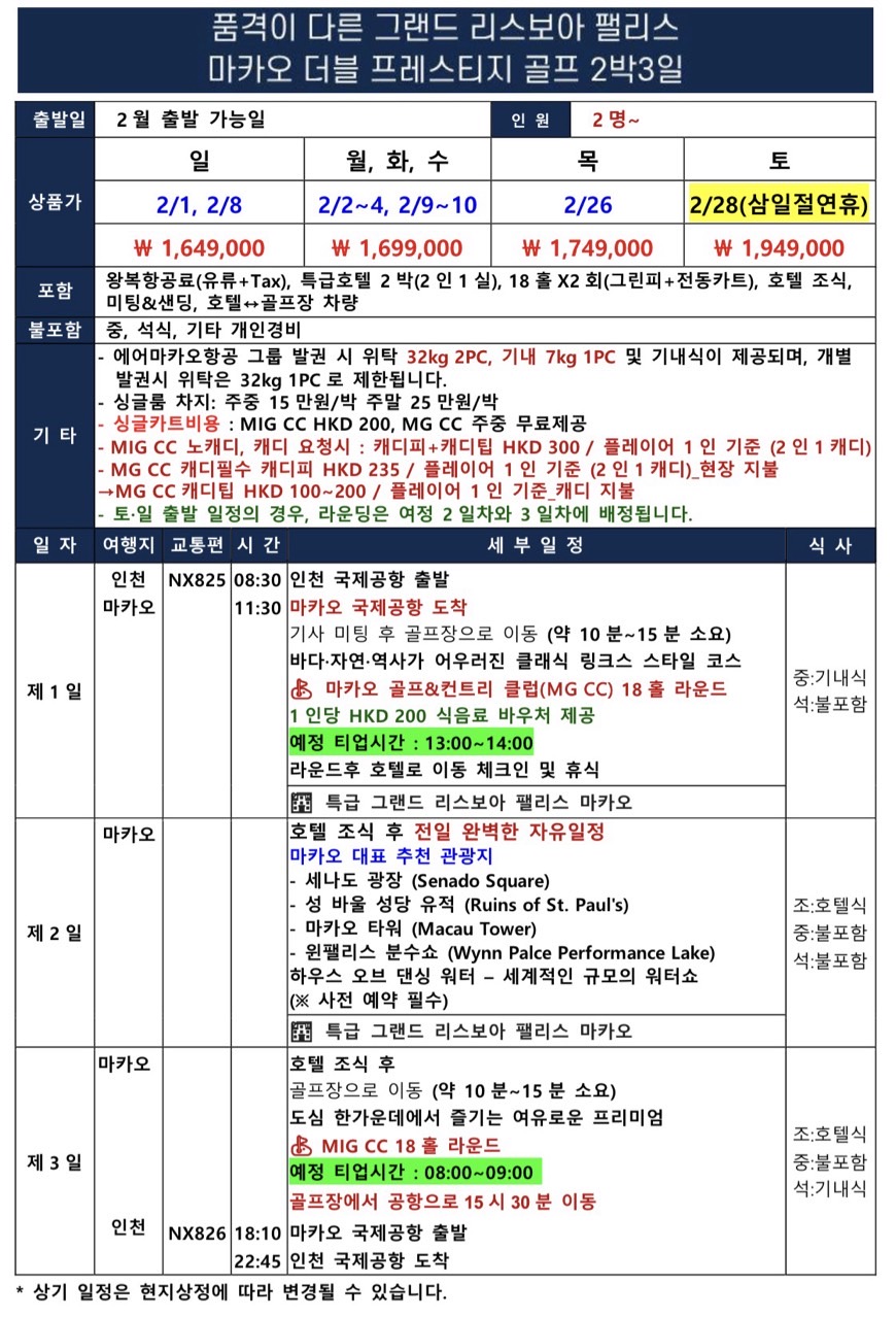 [마카오 프레스티지 2월] 품격이 다른 그랜드 리스보아 팰리스 - 2박3일 패키지