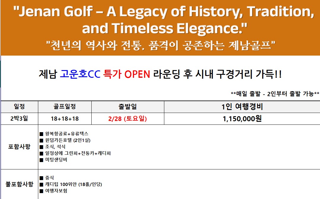 [제남 고운호] 3·1절 고품격 골프여행 - 5성급 윈덤호텔