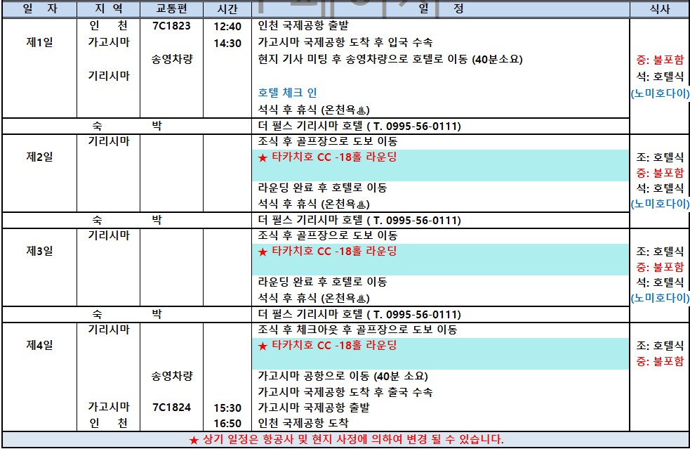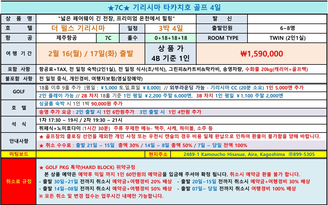 [가고시마 설날연휴] 2/16(월) 또는 17(화) 출발 더 펄스 기리시마 골프 리조트