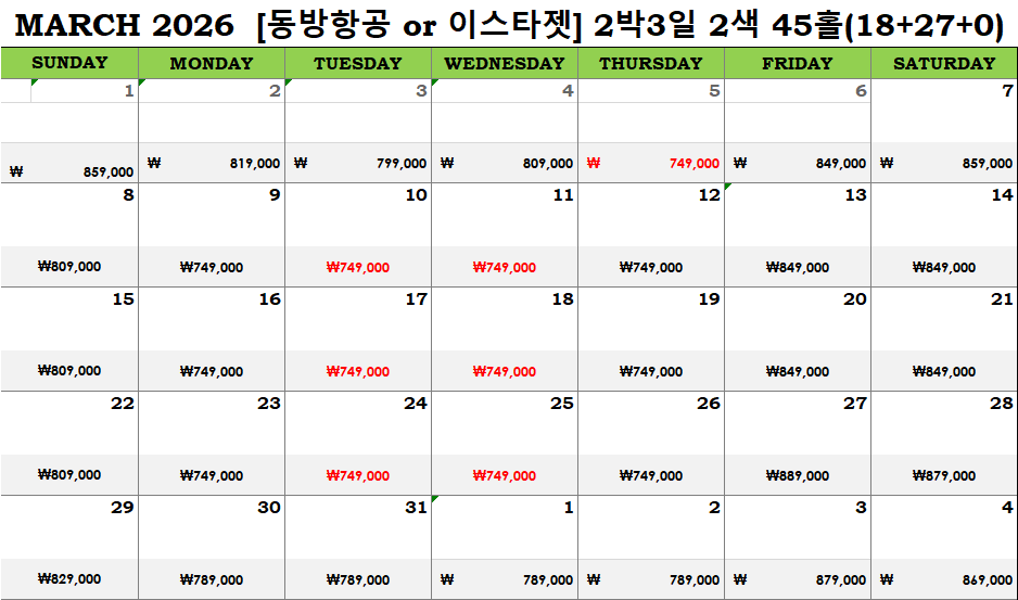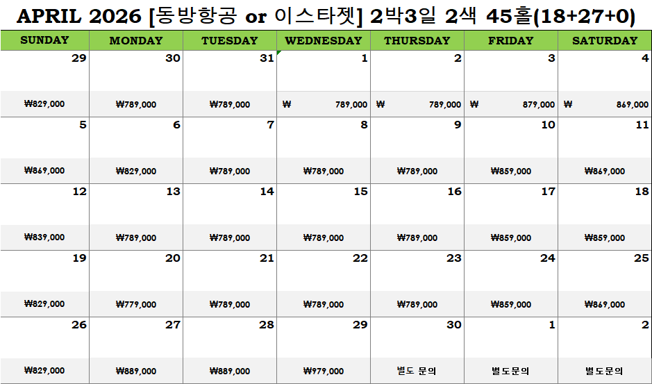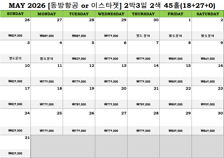 2박 3일 일정 [조/조 라운딩 2회 45홀]