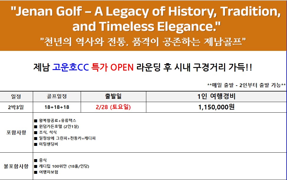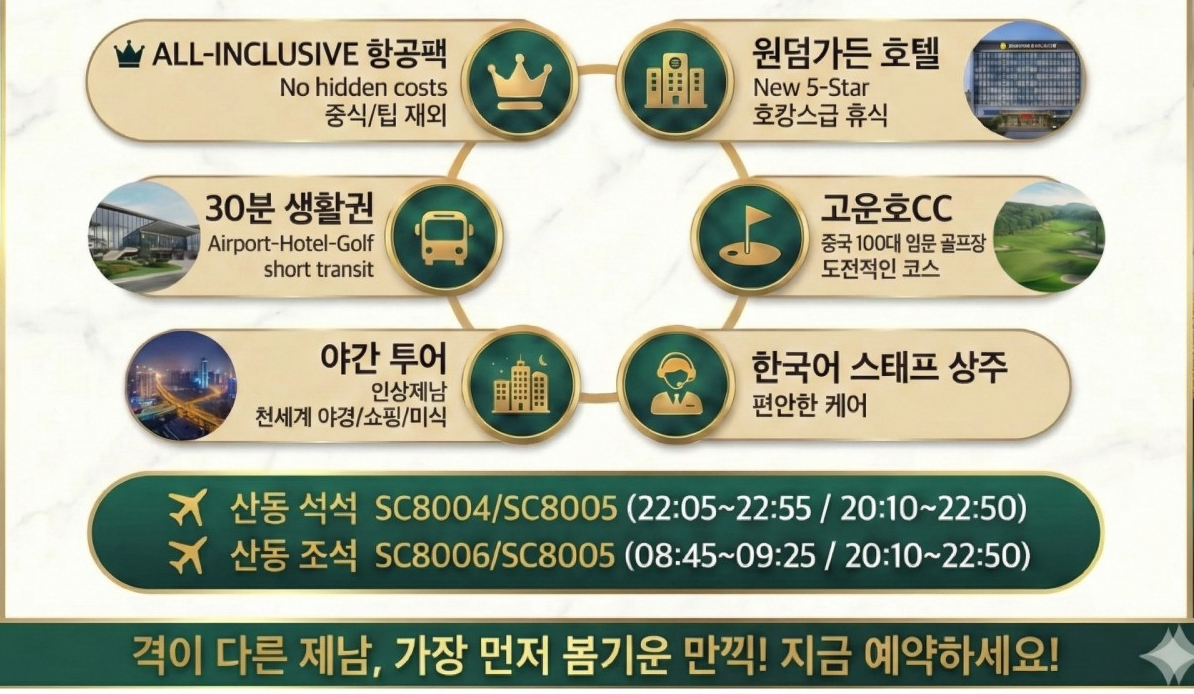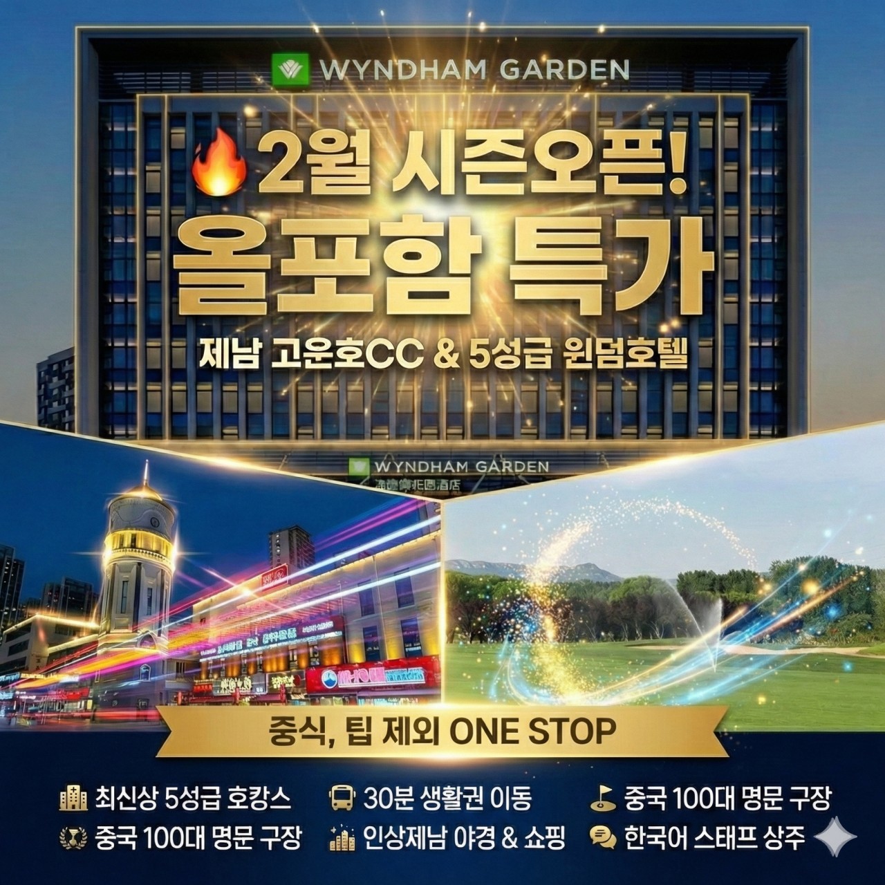 [제남] 최신상 5성급 호캉스 윈덤호텔과 고운호 플레이 - 모두포함 패키지